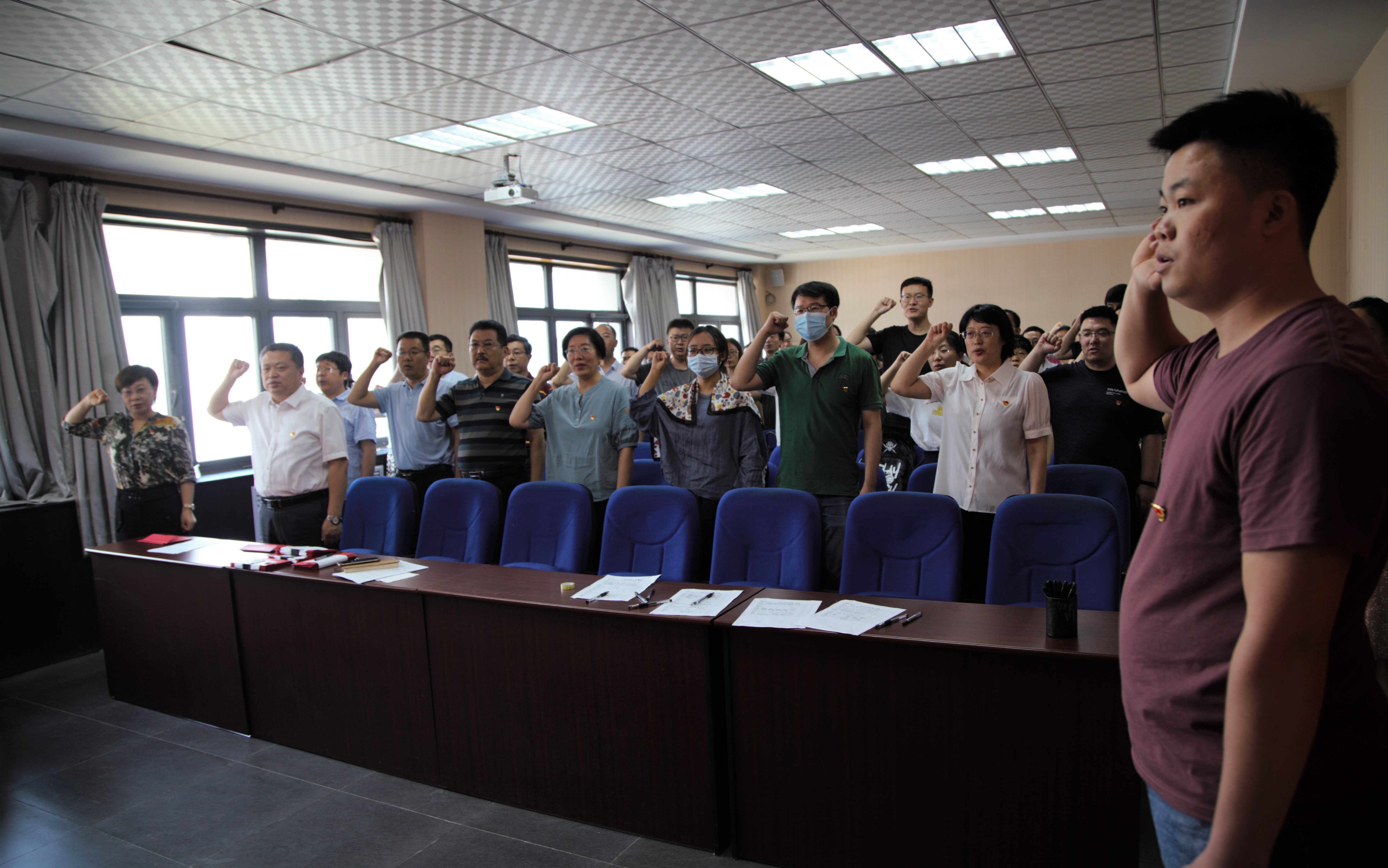 会上,当天过生日的党员代表元伟老师领誓重温入党誓词。党员们紧握右拳,庄严宣誓,随着一声声铿锵的誓词,在场的每一位党员都得到精神的洗礼和党性的锤炼,时刻提醒自己牢记入党誓言,终身践行承诺。