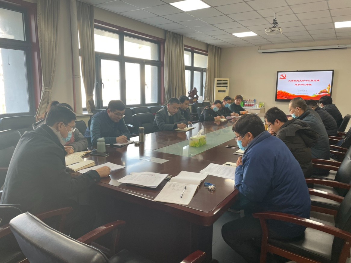 召开2021年度党支部书记抓党建述职评议考核工作会。学校组织部部长付建军和专职组织员金香、纪检员田爱英出席会议,会议由学院党委负责人徐书景主持。